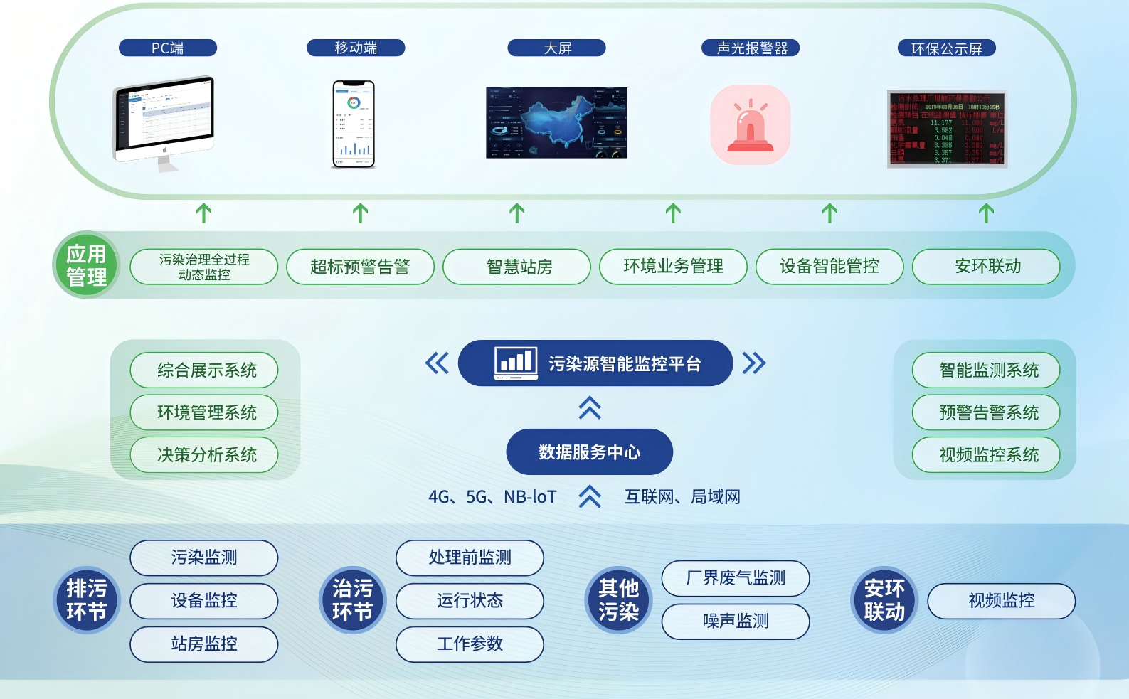 以企業(yè)環(huán)境在線監(jiān)測(cè)為核心,運(yùn)用物聯(lián)網(wǎng)、B1、大數(shù)據(jù)分析等技術(shù),采用開放式平臺(tái)架構(gòu),構(gòu)建一套集環(huán)境監(jiān)測(cè)、處理、分析、決策及展示為一體的環(huán)保物聯(lián)網(wǎng)平臺(tái),實(shí)現(xiàn)企業(yè)污染治理全過程的數(shù)據(jù)監(jiān)測(cè)、超標(biāo)預(yù)警、問題溯源和管理可視化。為企業(yè)提供嶄新的環(huán)境管理模式最終實(shí)現(xiàn)企業(yè)環(huán)境管理的物聯(lián)網(wǎng)。