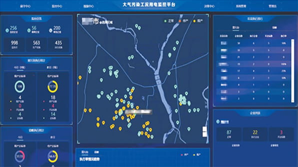 大氣污染工況用電監(jiān)控平臺是通過電量監(jiān)測技術(shù)、物聯(lián)網(wǎng)技術(shù)、大數(shù)據(jù)分析技術(shù),實現(xiàn)對企業(yè)生產(chǎn)設(shè)施、治污設(shè)施、排放全過程的智能管控,分析和預(yù)警各企業(yè)生產(chǎn)治污設(shè)備的實際運行情況與限產(chǎn)減產(chǎn)執(zhí)行情況。通過數(shù)據(jù)采集與分析系統(tǒng)、預(yù)警系統(tǒng)、生產(chǎn)負荷分析系統(tǒng)、響應(yīng)政府對重污染天氣應(yīng)急方案和錯峰生產(chǎn)技術(shù)的執(zhí)行力。